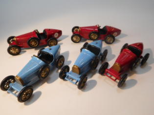PAYA (スペイン) 1/20 TINTOY(ブリキ) ひとつ前のPAYA(1/8)の縮小版です。 こちらも復刻版ですがなかなか雰囲気があります。 手元にありませんが赤の車体色のものもあるよう です。 1/8のものと同様にゼンマイで後輪が駆動し手動 で前輪の向きを変えられます。 中国製などのコピィものが市場に大量に出回って います。 並べてよく見るとフェンダーのルーバーの数 がコピィ品のほうは少なっかったりしますが殆ど同じです。 下の2枚の写真はコピィものです ![]() ![]() PAYAが再生産した復刻版にはPAYA社発行 のシリアルNo入りの証明書のようなものが入って いました。(左の真ん中の写真) |