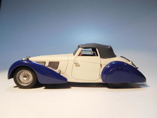 Aravis → ミニカーのページへ 2シーターのカブリオレの車体で、ブガッ ティの工場で生産されたとされています。 と言うことはモーリスハイムで製造された ことになりますが、当時ジャン・ブガッティの デザインした車体でも外部のコーチビルダ ーに車体の製作を委託(つまり外注)した ケースもあった様で真意は不明です。 美しい細長い車体でリアのフェンダー後部 が後ろに長く伸びています。 ※ ちなみにアラヴィスとはフランスの山脈の 名称で、美しい曲がりくねった道が続く 観光地で、ツールドフランスのコースでも 度々名前が出てきます。 写真は LUXCAR (仏) 1/43 |